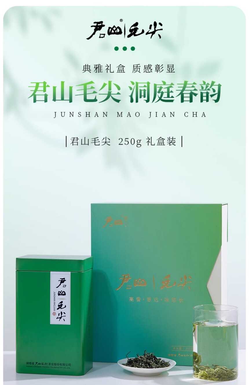 • [君山牌] 2023明前新茶湖南特產(chǎn)君山毛尖禮盒裝春茶送禮茶葉綠茶250g盒