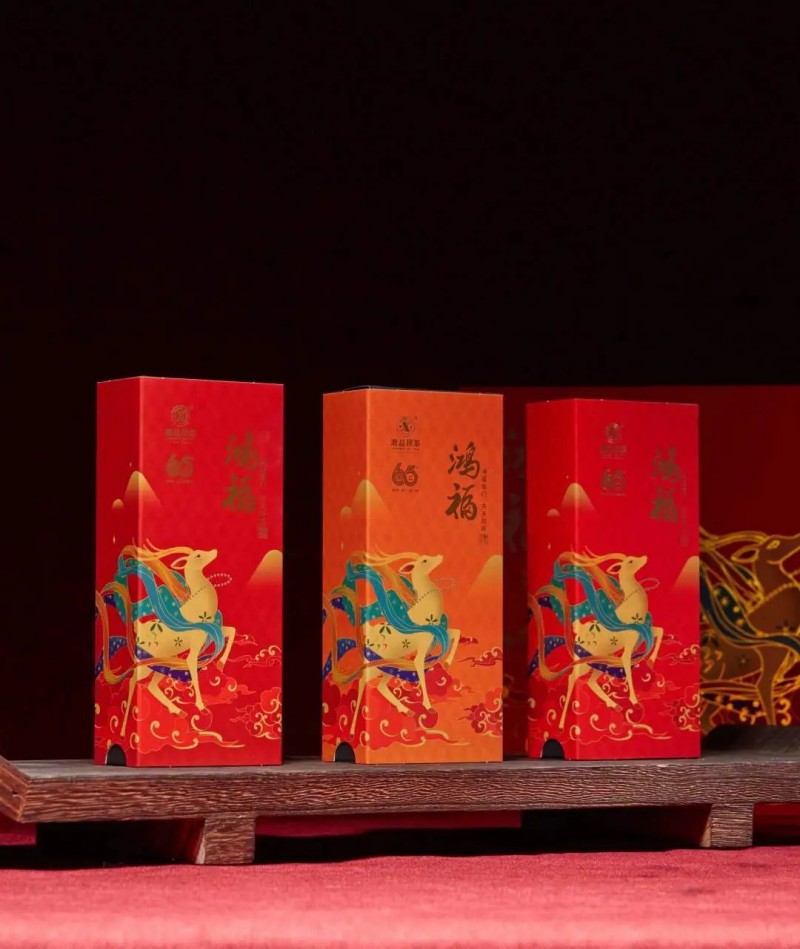 鴻福寓意祥瑞平安,福祿雙全。湘益茯茶精選雪峰山脈核心產(chǎn)區(qū)谷雨前后一級黑毛茶為原料,結合東方國潮元素,推出首款國風茶禮【鴻?!浚尸F(xiàn)東方美學,引領茶禮風尚。