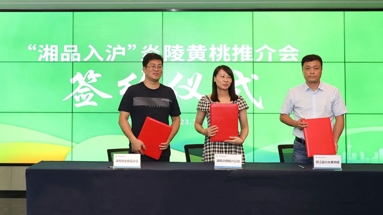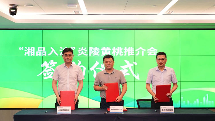 7月28日,湖南省供銷合作總社與上海市供銷合作總社戰(zhàn)略合作簽約儀式暨“湘品入滬”推介會(huì)在上海舉行。現(xiàn)場(chǎng),上海企業(yè)、商會(huì)簽約采購(gòu)湖南炎陵黃桃、湘茶產(chǎn)品意向金額1.57億元,“供銷力量”推動(dòng)著“湘字號(hào)”特色農(nóng)產(chǎn)品入滬提速升檔。